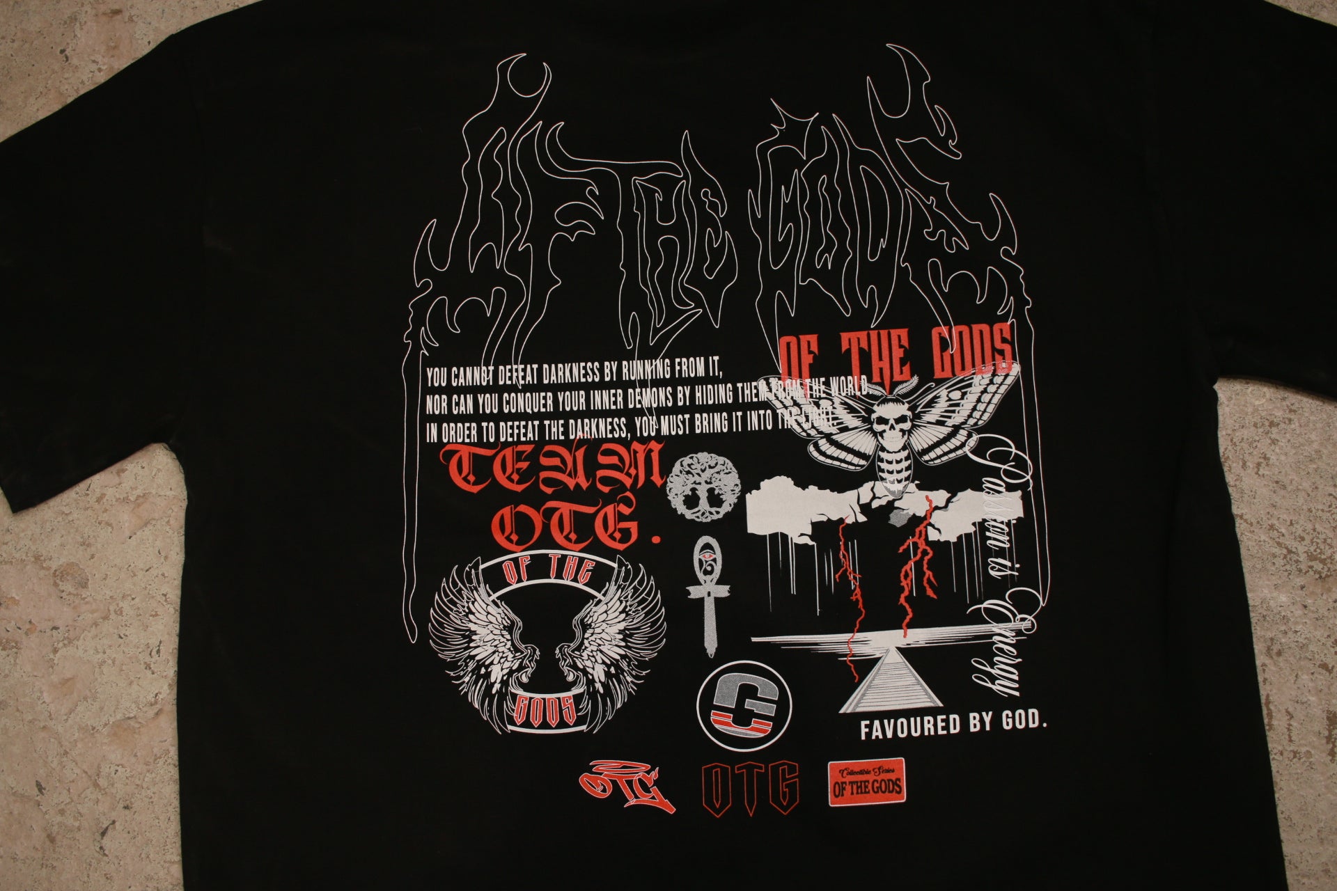 The Favoured Tee from the OTG Collectible Series blends gothic aesthetics with oversized streetwear culture. Crafted from heavyweight 100% cotton, it delivers comfort, structure, and the oversized drop-shoulder silhouette that defines the Of The Gods style.