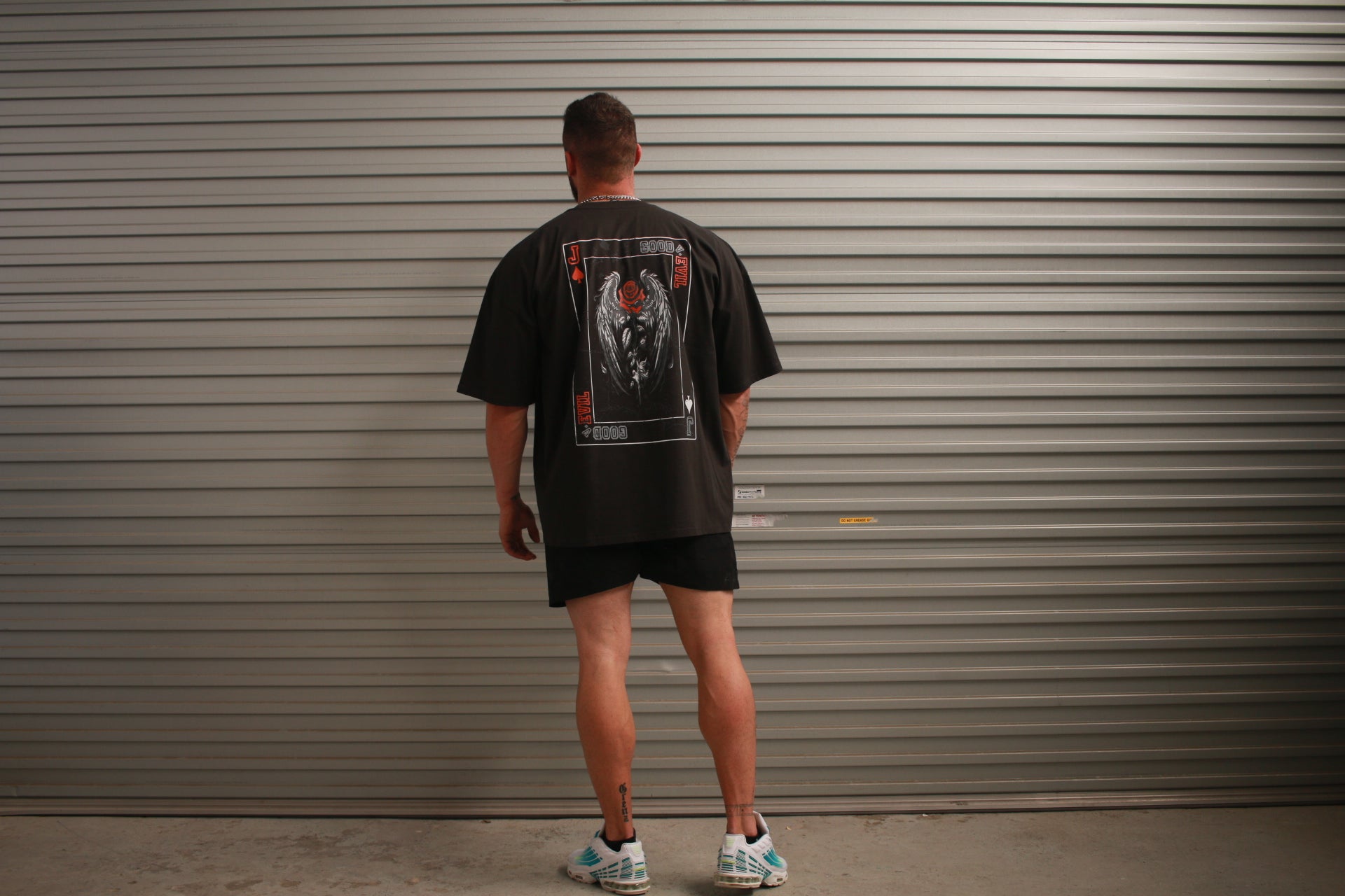 Stand Out in Chaos. The Joker Tee is an oversized streetwear/ Gymwear essential that combines premium comfort with disruptive style. Cut from heavyweight 100% cotton, it’s built for durability while delivering the relaxed, drop-shoulder silhouette that defines the oversized aesthetic.